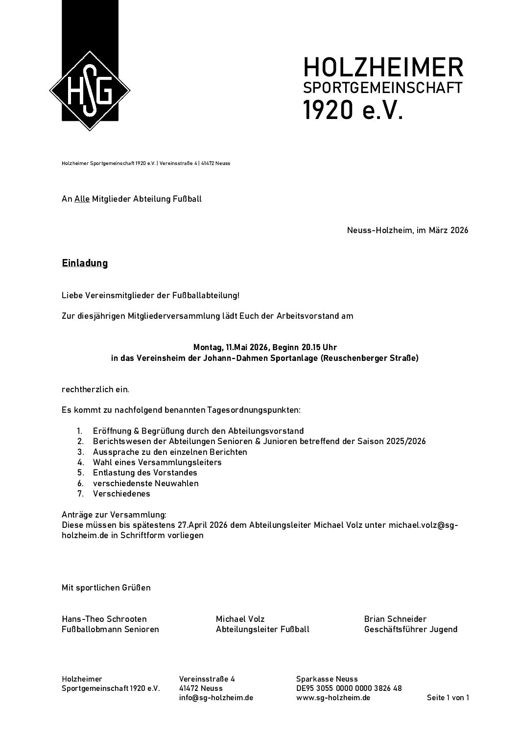 Liebe Vereinsmitglieder der Fußballabteilung!