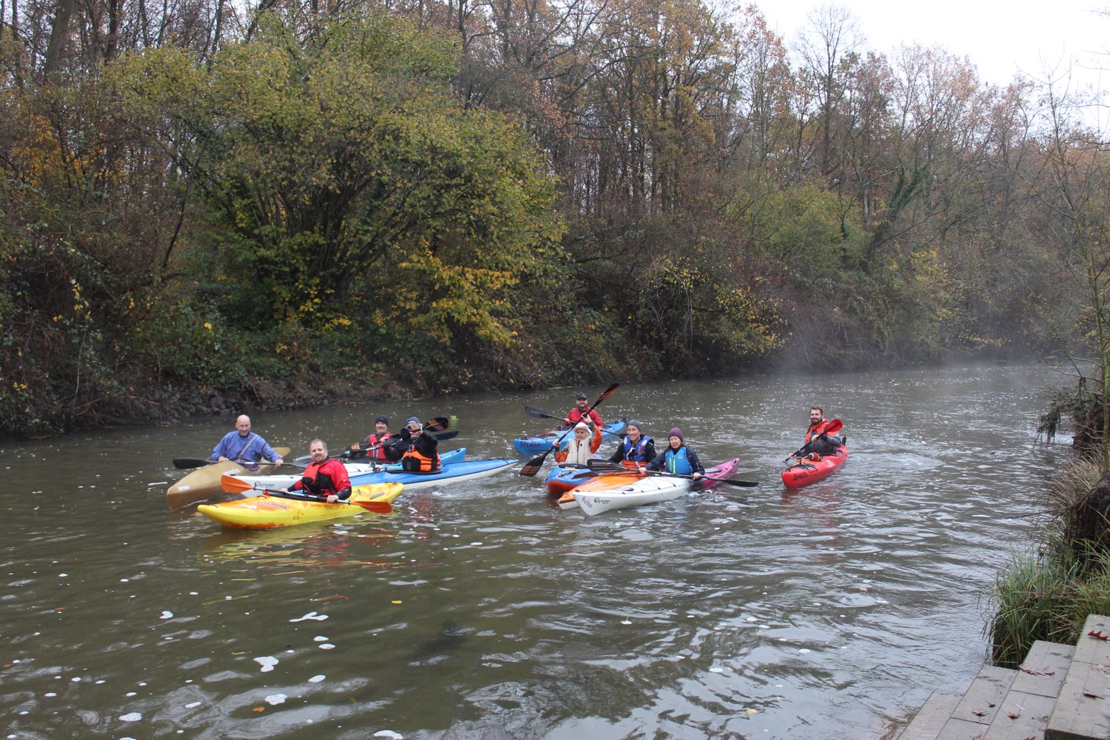 Die Erft zeigte sich dabei als idealer Fluss für Wanderfahrten. Sie eignet sich sowohl für erfahrene Paddler*innen als auch für sportlich motivierte Einsteiger*innen, da sie ein ausgewogenes Verhältnis aus ruhigem Dahingleiten und Abschnitten mit leicht erhöhter Strömung bietet. Dadurch konnte sich jede Person in der Gruppe wohlfühlen und die Fahrt in ihrem eigenen Rhythmus genießen.