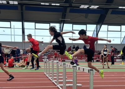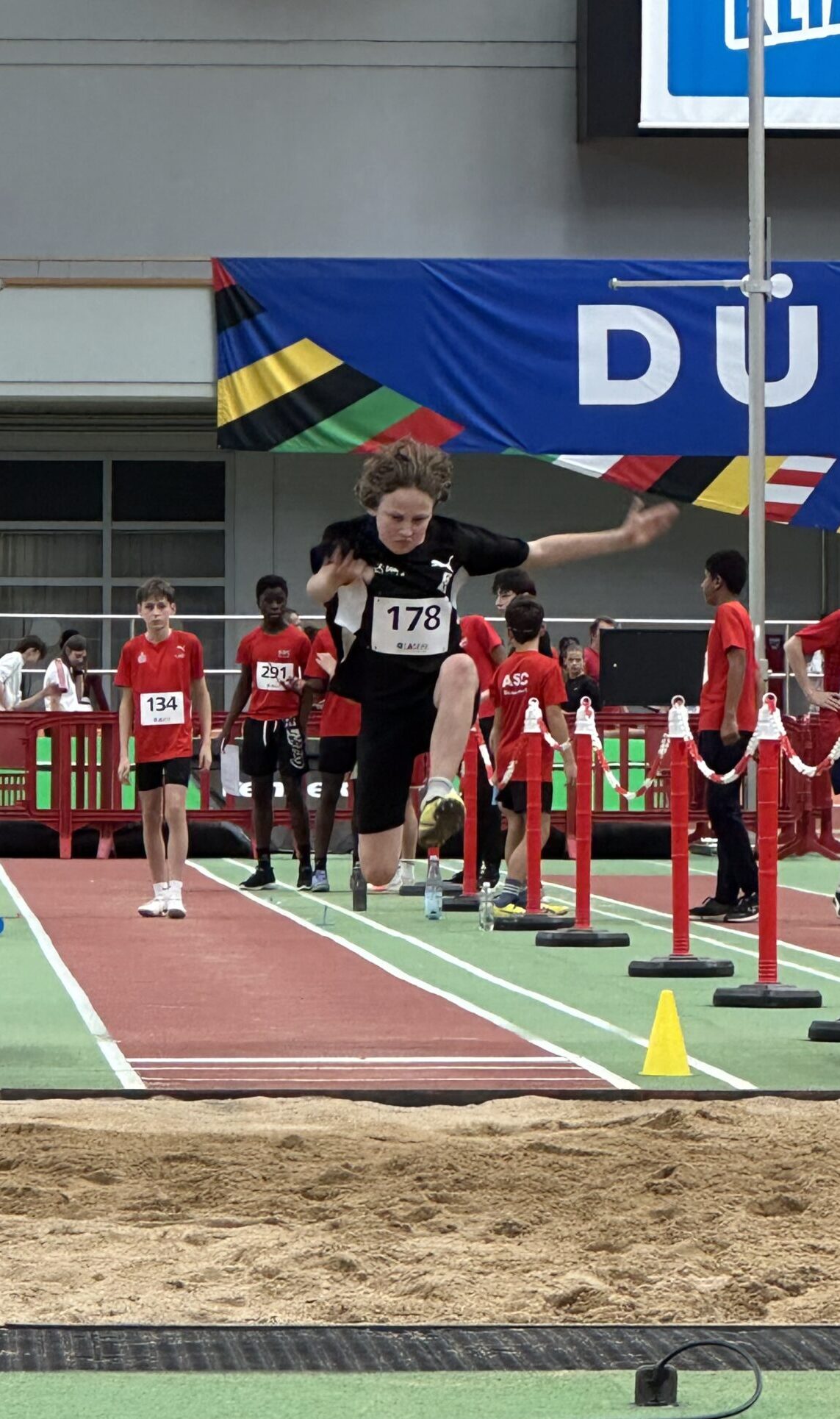 Im wiederholten Hürdenlauf gaben beide noch einmal alles. Besonders Ian konnte sich freuen, denn er verbesserte seine persönliche Bestzeit um knapp zwei Sekunden. Anschließend folgte der Weitsprung, bei dem beide etwas Probleme beim Absprung hatten. In einem sehr starken Teilnehmerfeld reichte es leider nicht für den Endkampf. Zudem liefen beide zum ersten Mal die 60 m Sprintstrecke, sammelten dabei aber wertvolle Wettkampferfahrung.