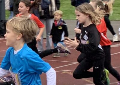 In der U10 gingen Madlen, Taliah, Emma, Steffi und Emil über 1 Kilometer an den Start. Alle fünf meisterten die Strecke mit viel Motivation und Teamgeist. In der U12, ebenfalls über 1 Kilometer, starteten Amelie, Ben, Philipp, Hanna und Jonas in einem großen Teilnehmerfeld. Vorallem Amelie und Ben zeigten dort hervorragende Leistungen. Ben wurde in einer Zeit von 04:14 sechster und Amelie verpasste mit nur fünf Sekunden Rückstand knapp das Podium und landete auf Platz 4. Maxi und Ian vertraten uns in der U14 und belohnten sich mit den Platzierungen 3 und 4.
