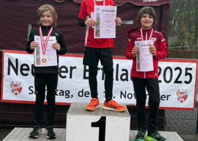 Am 15. November ging es für unsere HSG-Kinder und einige Erwachsene beimtraditionellen 52er Erftlauf in Neuss an den Start. Trotz einer starken Krankheitswelle, die unsere ursprünglich 25 gemeldeten Kinder deutlich reduzierte, standen am Wettkampftag immer noch viele motivierte Athletinnen und Athleten an der Startlinie. Das wechselhafte Wetter und die teilweise matschige Strecke über die Ludwig-Wolker-Anlage machten den Tag zusätzlich spannend.
