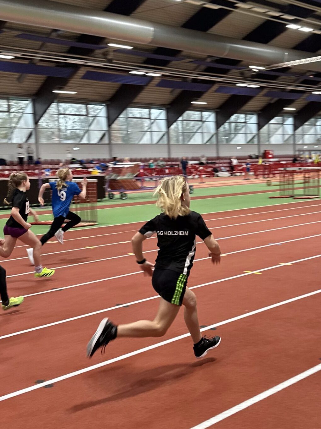 Am 10.01. nahmen die jungen Leichtathletinnen und Leichtathleten der SG Holzheim an den Regionshallenmeisterschaften der U12 in Düsseldorf teil. In der Leichtathletikhalle stellten sich die Kinder den Disziplinen 50 m Sprint, Weitsprung und 800 m Lauf. Für viele Athletinnen und Athleten war es der erste Wettkampf in der Halle, zudem waren die Teilnehmerfelder in allen Altersklassen sehr groß, was die Aufregung zusätzlich steigerte. Dennoch zeigten alle Kinder großen Einsatz und eine hohe Motivation.
