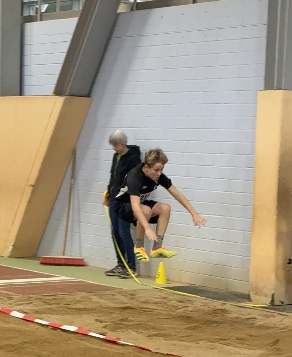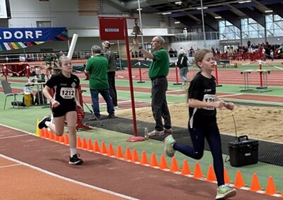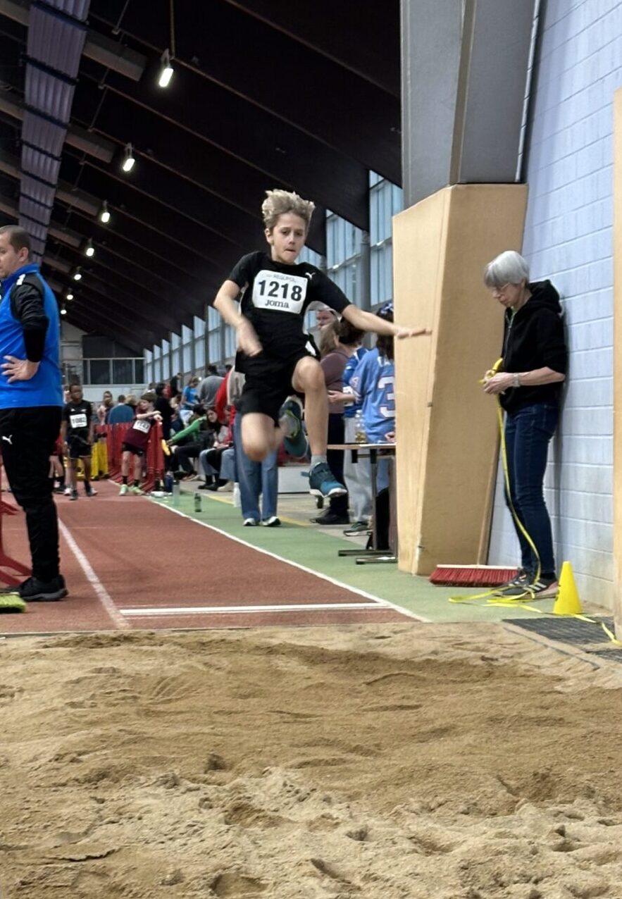 Bei den Jungen der M11 war es für Jonas ebenfalls der erste Wettkampf in der Halle. Ben unterstützte ihn dabei sehr gut und half ihm, einen Teil der Nervosität abzulegen. Über 50 m hatten beide Athleten Schwierigkeiten mit dem Startblock, konnten dennoch ordentliche Zeiten erzielen. Im 800-m-Lauf zeigte Ben in einem sehr schnellen Rennen eine starke Leistung und lief eine sehr gute Zeit von 3:09 Minuten. Jonas absolvierte seinen ersten 800-m-Lauf überhaupt und kam nach 3:17 Minuten ins Ziel. Im Weitsprung konnte Jonas seine persönliche Bestweite deutlich steigern und verbesserte sich um mehr als 40 Zentimeter auf 3,48 m. Ben zeigte auch hier seine gewohnte konstante Leistung mit 3,27 m.
