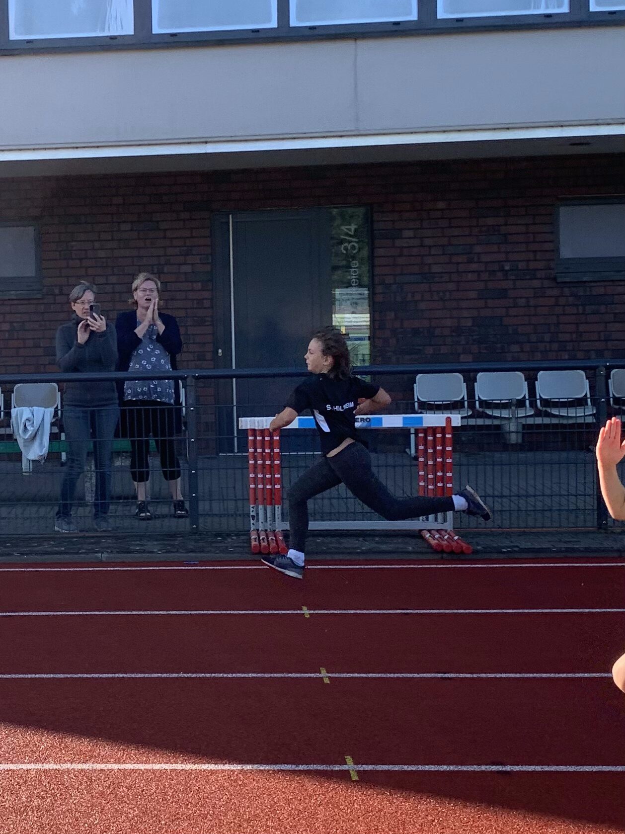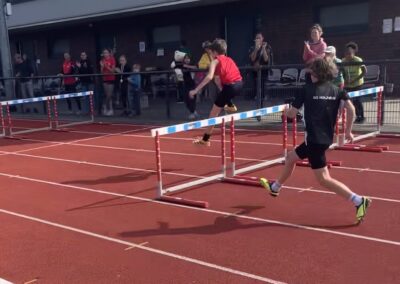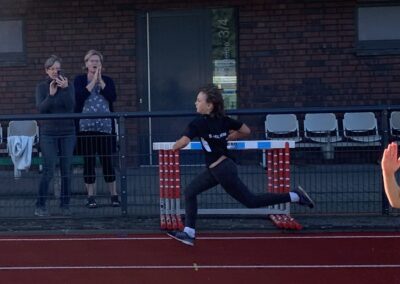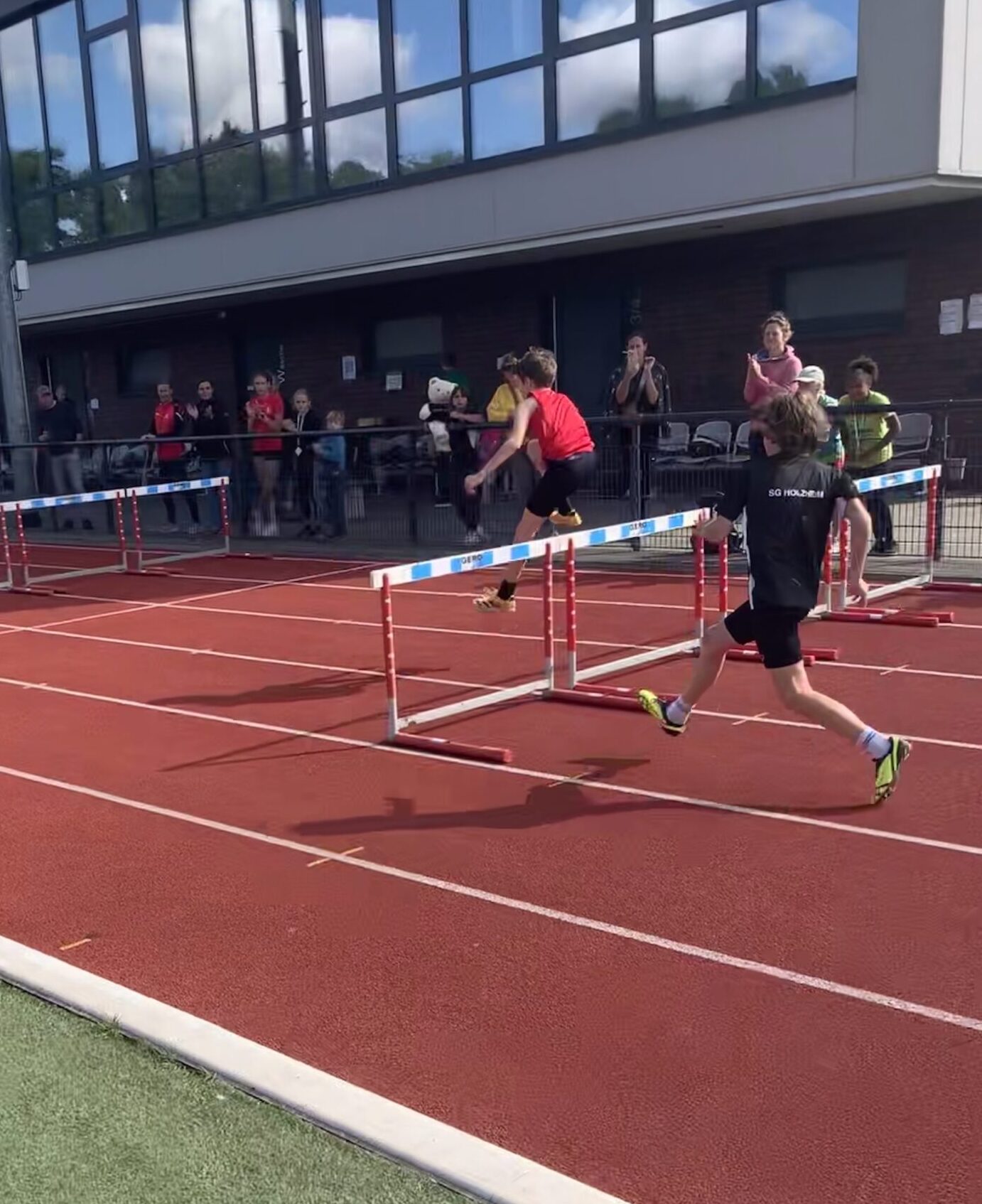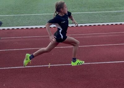 Für Ian (M12) stand eine Premiere an: Zum ersten Mal wagte er sich über die 60 Meter Hürden. Trotz Respekt vor den Hürden fand er schnell seinen Rhythmus und überquerte sie souverän.