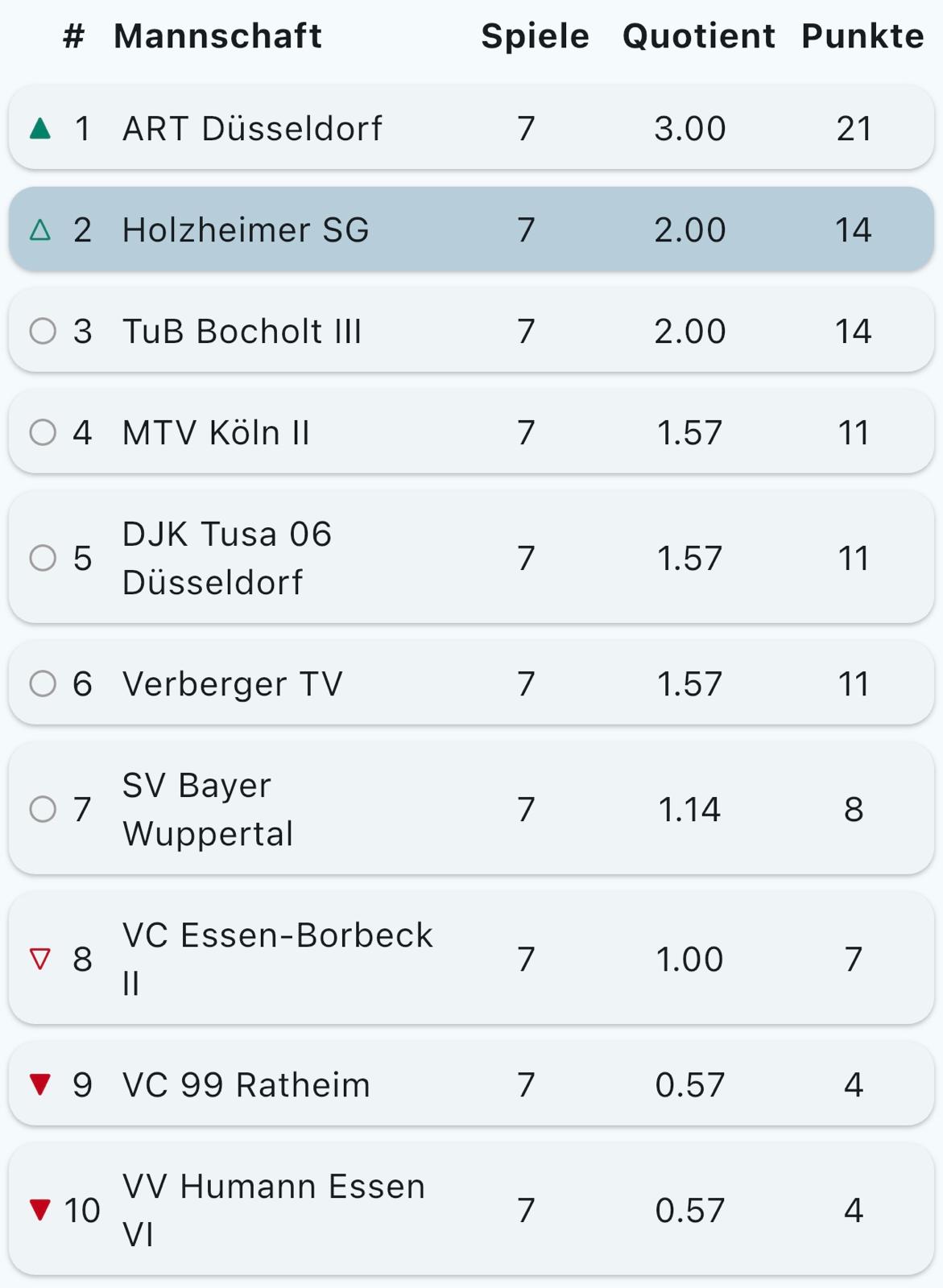 Mit unveränderter Aufstellung ging es in die nächsten Durchgänge – und Holzheim blieb stabil. Satz zwei gestaltete sich ähnlich einseitig und endete verdient mit 25:16. Erst in Satz drei schlichen sich leichte Unkonzentriertheiten ein, die den Gästen etwas Auftrieb gaben. Doch gefährlich wurde es nie; am Ende stand ein kontrolliertes 25:19 und damit ein glatter 3:0-Heimsieg!