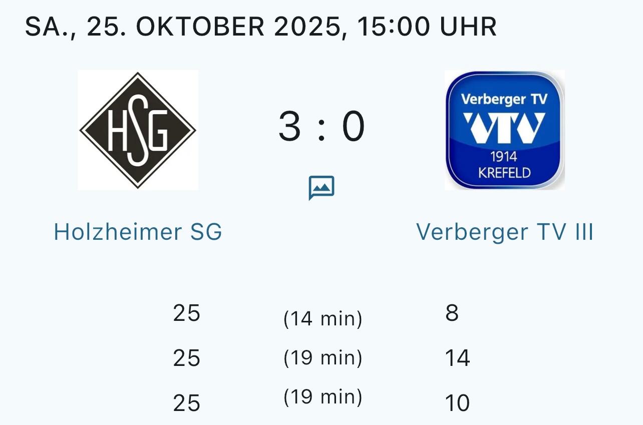 Im dritten Satz machten die Holzheimerinnen dort weiter, wo sie zuvor aufgehört hatten. Mit konstanter Konzentration und sicherem Zusammenspiel ließen sie dem Gegner erneut keine Chance und setzten mit 25:10 den Schlusspunkt unter eine überzeugende Vorstellung.