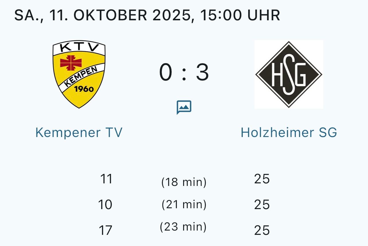 Am Samstag, den 11. Oktober, traf die Holzheimer SG in der Bezirksklasse 12 auf den Kempener TV. Nach einer kurzen Findungsphase zu Beginn des Spiels fanden die Holzheimer Damen schnell zu ihrem gewohnten Rhythmus und entschieden die ersten beiden Sätze souverän mit 25:11 und 25:10 für sich. Mit druckvollen Aufschlägen und einer stabilen Annahme ließ das Team um Trainer Lars Junker und Co-Trainer Thomas Schorreck den Gastgeberinnen kaum Chancen.